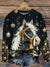 Christmas Horse Prints Casual Cotton Sweatshirt