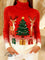 Vintage Reindeer Christmas Tree Print Knit Turtleneck Pullover Sweater