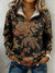 Casual Retro Floral Art Print Half-Zip Cotton Sweatshirt