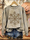 Retro Denim Patchwork Visual Snowman Casual Cotton Sweatshirt