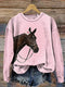 Retro Floral Dragonfly Pattern Print Casual Cotton Sweatshirt