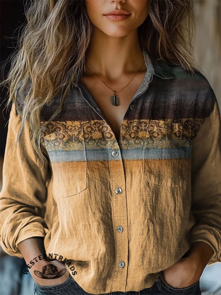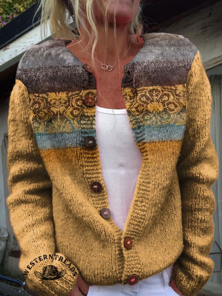 Retro Stripe Texture Pattern Casual Cotton Sweatshirt