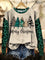 Retro Texture Christmas Tree Print Casual Cotton Sweatshirt