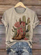 Romantic Cowboy Hat with Floral Western Art Print Casual Round Neck Short Sleeve T-Shirt