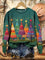 Vintage Christmas Tree Print Casual Cotton Sweatshirt