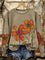 Vintage Classic Simple Flower Art Print Casual Cotton Sweatshirt