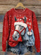 Vintage Contrast Print Leopard Print Christmas Sweatshirt
