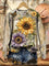 Vintage Flower Art Print Casual Cotton Sweatshirt