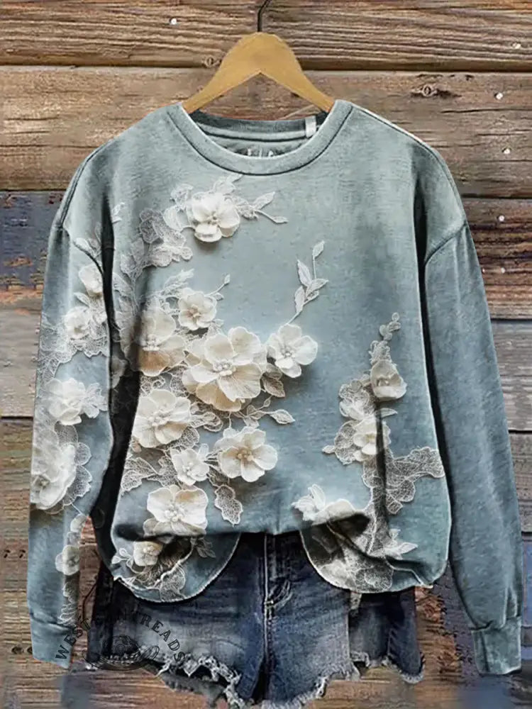 Vintage Flowers Pattern Casual Cotton Sweatshirt