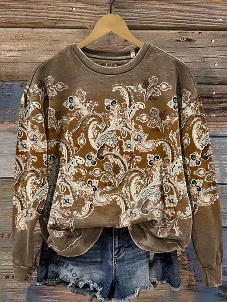 Vintage Flowers Print Casual Cotton Sweatshirt