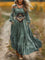 Women's Art Print V-Neck Button Pocket Cotton Dress