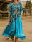 Women's Classic West Turquoise Print Pocket Cotton Dress