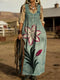 Women's Vintage Ethnic Flowers Print Casual Denim Dress