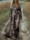 Women's Vintage Flowers Print V-Neck Button Pocket Cotton Dress