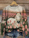 Women's Vintage Geometry Art Print V-neck Casual T-Shirt