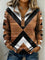 Brown Aztec Print Casual Half-zip Cotton Sweatshirt