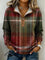 Christmas Color Plaid Print Casual Half-zip Cotton Sweatshirt