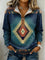 Retro Aztec Print Casual Half-zip Cotton Sweatshirt