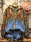 Retro Print Casual Cotton Patchwork Hooded Zip-up Sweatshirt
