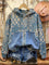Retro Print Casual Cotton Patchwork Hooded Zip-up Sweatshirt