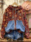 Retro Print Casual Cotton Patchwork Hooded Zip-up Sweatshirt