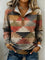 Women's Color Aztec Print Casual Color-blocked Casual Half-zip Cotton Sweatshirt
