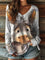 100% Cotton🍃Women's Funny Cute Donkey Print Casual V-neck Long Sleeve T-shirt