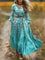 Women's Turquoise Gradient Aztec Print V-Neck Button Pocket Cotton Dress