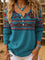 Women's Vintage Aztec Print Henley Neck Sweater Top