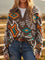 Women's Vintage Print Casual V-neck Pullover Knit