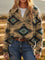 Women's Vintage Print Casual V-neck Pullover Knit