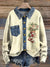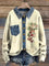 Christmas Stocking Print Patchwork Denim Knit Pullover Sweater