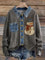 Retro Snowman Print Patchwork Denim Knit Pullover Sweater