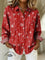 Women's Vintage Christmas Art Print Casual Cotton Shirt