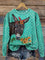 Retro Donkey Holding A Flower Pattern Print Casual Cotton Sweatshirt