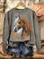 Retro Horse Art Print Casual Cotton Sweatshirt
