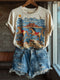 Retro Texture Sunflower Flower Print Casual T-shirt