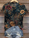 Women's Vintage Floral Print Henley Neck Sweater Top