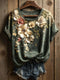 Women's Vintage Floral Print Henley Neck Sweater Top