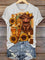 Sunflower & Cow Art Print Casual T-shirt