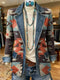 Leopard Print Patchwork Denim Sweater Cardigan Coat