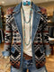 Retro Aztec Print Patchwork Denim Sweater Cardigan Coat