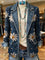 Retro Floral Fabric Art Print Patchwork Denim Sweater Cardigan Coat