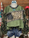 Funny Donkey Print Patchwork Denim Leopard Print Christmas Sweatshirt