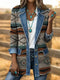 Retro Art Print Patchwork Denim Sweater Cardigan Coat