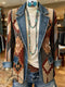 Retro Aztec Print Patchwork Denim Sweater Cardigan Coat