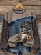 Retro Snowman Leopard Print Denim Patchwork Casual Cotton Sweatshirt
