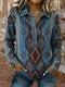 Vintage Elegant Denim Aztec Art Shirt