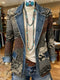 West Print Patchwork Denim Sweater