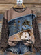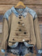 Winter Christmas Art Print Casual Denim Patchwork Sweatshirt